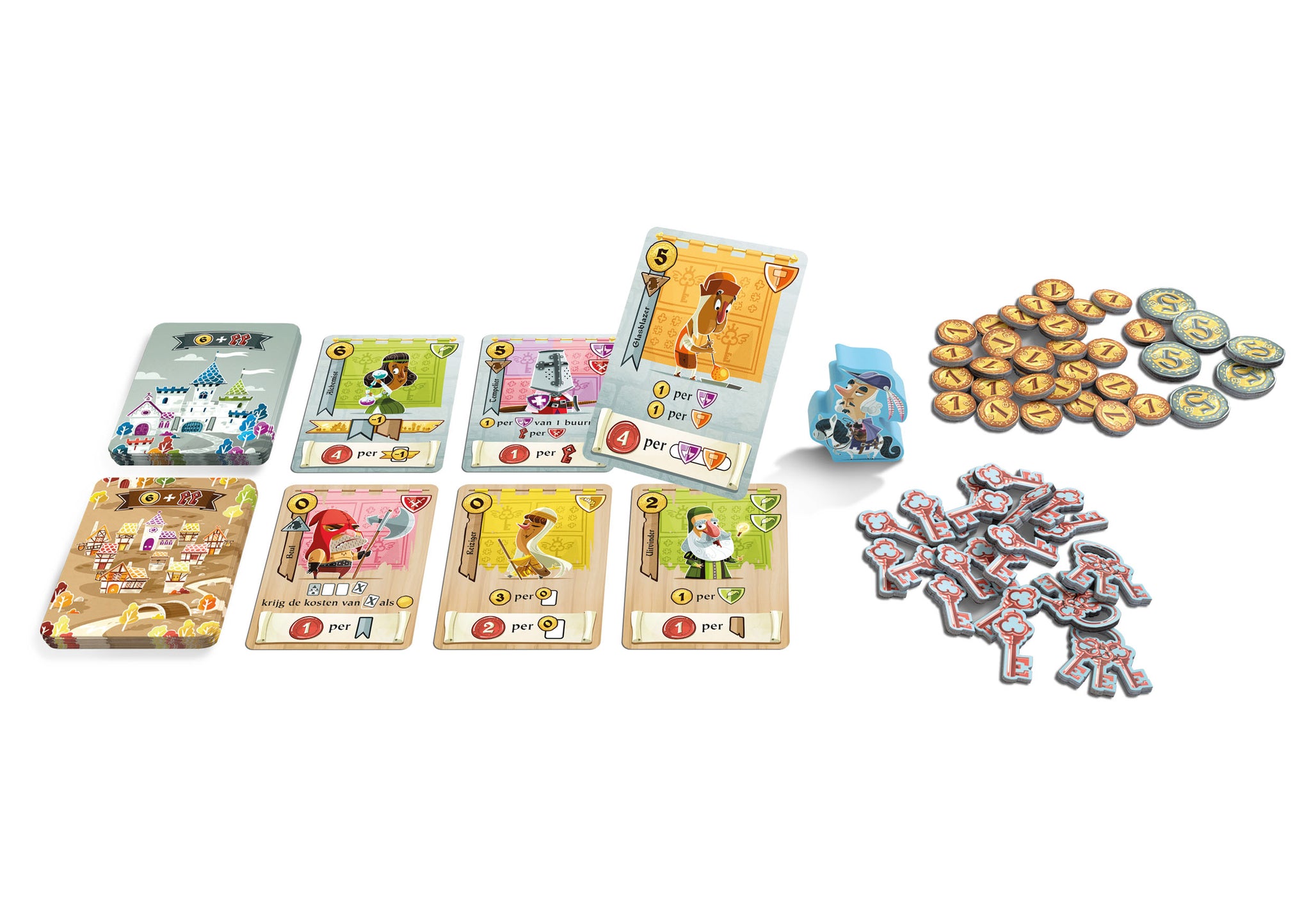 Verzamel goud om 9 kaarten uit de 2 open markten te kopen. Met deze kaarten maak je een grid van dorpelingen en kasteelbewoners met unieke eigenschappen en bonussen die je punten opleveren.