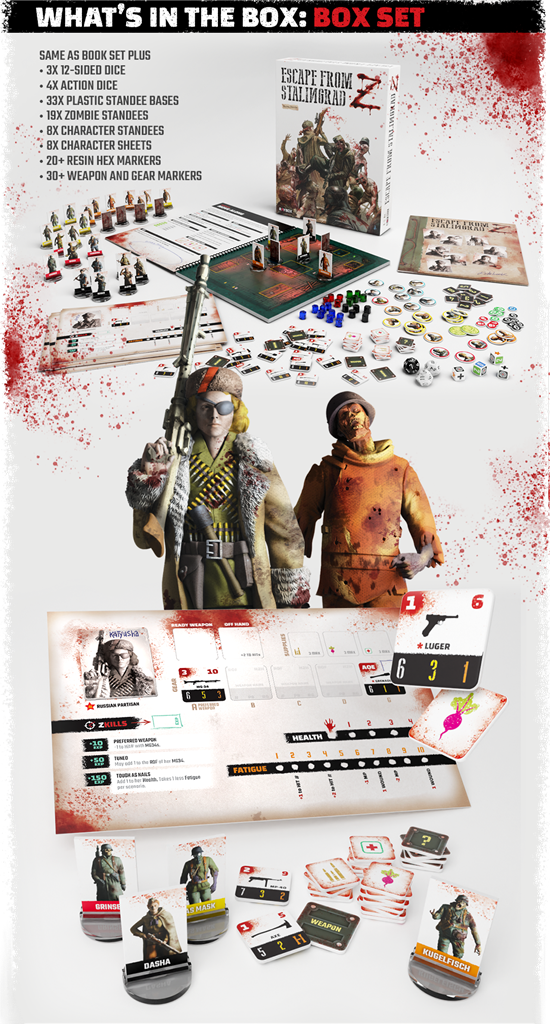 Escape from Projekt Riese is the sequel stand alone game to Escape from Stalingrad Z. It is a solo/coop campaign game of tactical combat which is set in the horrific zombie plague of World War Two.