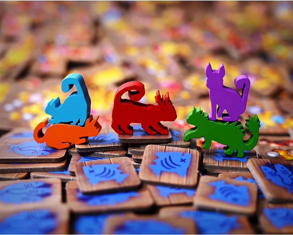 Each lesson you collect gives you another personal way of scoring points, and 38 unique lessons are available. Complete lessons, fill your boat, and keep cat families together to score points, and the player with the most points after five rounds wins.