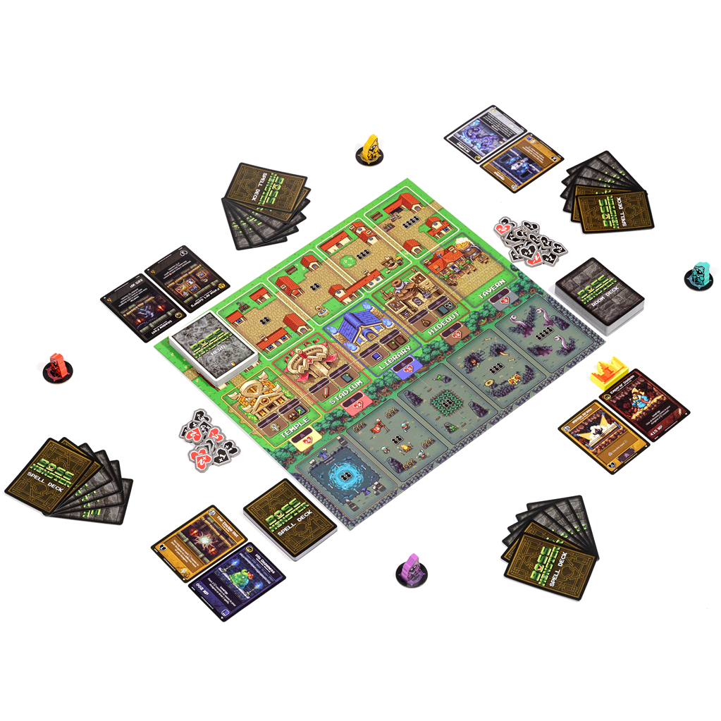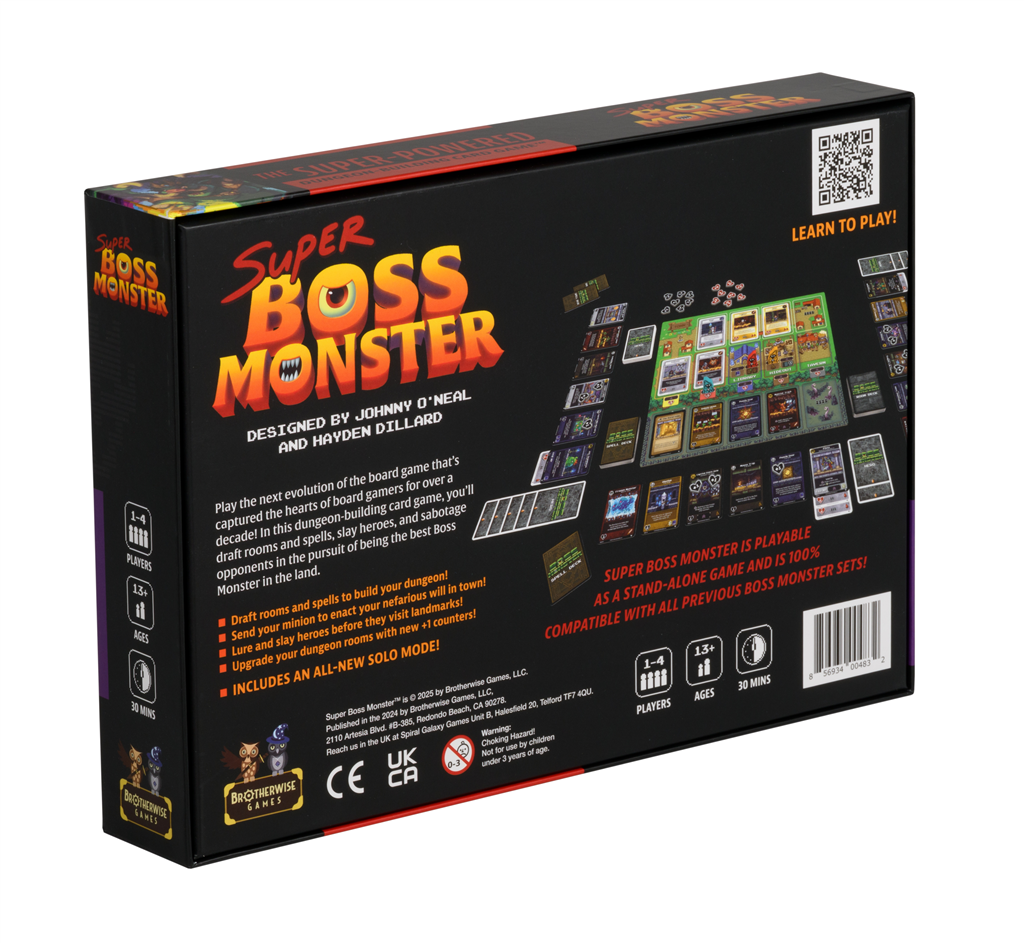 Fully backward compatible with previous Boss Monster expansions, Super Boss Monster supercharges your game with a central town board and player action selection. Just like the original Boss Monster, your job is to build the perfect dungeon to lure and destroy pesky heroes.